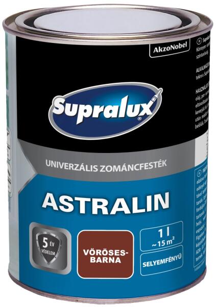 Supralux Astralin oldószeres zománcfesték, 15 m2/l kiadósság, ellenáll az időjárás hatásainak.